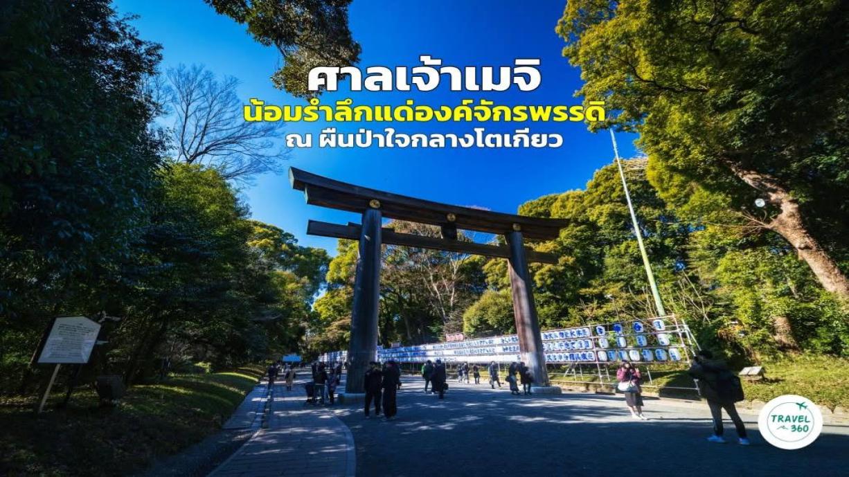 เสาโทริอิไม้สูงใหญ่ตระหง่านเป็นสัญลักษณ์บอกความเป็นศาลเจ้า โดยปรากฏตราดอกเบญจมาศสีทองสัญลักษณ์ของราชวงศ์ญี่ปุ่นย้ำให้ผู้มาเยือนได้รับรู้ว่า “ศาลเจ้าเมจิ” ที่รายล้อมด้วยความร่มรื่นของแมกไม้ใจกลางเมือง มีความเกี่ยวข้องกับราชวงศ์แห่งดินแดนอาทิตย์อุทัยดอกเบญจมาศสีทองสัญลักษณ์ของราชวงศ์ญี่ปุ่นอุทิศแด่จักรพรรดิผู้นำญี่ปุ่นสู่ยุคใหม่ศาลเจ้าเมจิ (Meiji Jingu) หนึ่งในศาลเจ้าชินโตที่มีความสำคัญและมีชื่อเสียงอันดับต้นๆของญี่ปุ่น ตั้งอยู่ย่านชิบูยะ ใจกลางมหานครโตเกียว แต่บรรยากาศของศาลเจ้า เสมือนการก้าวเข้าสู่โลกอีกใบ เพราะรายล้อมด้วยป่าเขียวชอุ่มครึ้มหลากหลายไปด้วยพืชพันธุ์กว่า 300 ชนิด ภายในอาณาเขตราว 7 แสนตารางเมตรศาลเจ้าเมจิศาลเจ้าแห่งนี้สร้างเพื่ออุทิศแด่ “จักรพรรดิเมจิ” (Meiji Emperor) รวมถึง “จักรพรรดินีโชเก็ง” (Empress Shoken) ซึ่งเป็นผู้ที่ทำให้ญี่ปุ่นกลายเป็นประเทศที่ก้าวสู่ยุคสมัยใหม่ในศตวรรษที่ 19จักรพรรดิเมจิ ทรงเป็นจักรพรรดิของญี่ปุ่นองค์ที่ 122 ครองราชย์ในช่วงปี ค.ศ.1868-1912 ซึ่งเป็นยุคที่ประเทศพัฒนาแบบก้าวกระโดด เกิดการปฏิวัติอุตสาหกรรม ยกเลิกชนชั้นซามูไร การวางรากฐานด้านการศึกษา กล่าวได้ว่าพระองค์ทรงเป็นผู้นำญี่ปุ่นสู่ยุคสมัยใหม่อย่างแท้จริงบรรยากาศร่มรื่นด้วยแมกไม้ยืนต้นภายหลังการสิ้นพระชนม์ของพระองค์ ชาวญี่ปุ่นโศกเศร้าเป็นอย่างมาก จึงต้องการสร้างศาลเจ้าเพื่อสักการะ รัฐสภาได้อนุมัติการก่อสร้าง โดยเริ่มขึ้นในปี ค.ศ.1915 จนแล้วเสร็จในปี ค.ศ.1920ระหว่างทางเดินไปศาลเจ้าว่ากันว่ามีชาวญี่ปุ่นจากทั่วประเทศร่วมกันบริจาคต้นไม้นับแสนต้น เพื่อให้นำมาปลูก และขอมีส่วนร่วมในการสร้างศาลเจ้าแห่งนี้ จนปัจจุบันต้นไม้เติบโตงอกงามแทบไม่ต่างจากป่าขนาดใหญ่ใจกลางเมือง ซึ่งการเดินเข้าไปในศาลเจ้าที่ร่มรื่นด้วยป่าโอบล้อมไว้ อาจทำให้แทบลืมไปเลยว่าอยู่ในใจกลางมหานครที่พลุกพล่านที่สุดแห่งหนึ่งของโลกจุดล้างมือก่อนเข้าศาลเจ้าถังสาเกระหว่างทางนอกจากเสาไม้โทริอิขนาดใหญ่ที่เป็นสัญลักษณ์ว่าเป็นเขตศาลเจ้าชินโต รวมทั้งผืนป่าร่มรื่นสองข้างทาง หนึ่งในจุดสังเกตและเป็นจุดแวะถ่ายภาพยอดนิยมของนักท่องเที่ยว คือ “ถังสาเก กับถังไวน์” ที่อยู่ระหว่างทางเข้าศาลเจ้าการประดับถังสาเกเหล่านี้ เนื่องมาจากในสมัยจักรพรรดิเมจิ ทรงเป็นผู้ทำให้อุตสาหกรรมไวน์และสาเกของญี่ปุ่น มีการพัฒนารูปแบบสมัยใหม่รวมทั้งสนับสนุนการพัฒนาด้านเทคโนโลยี ระหว่างทางเดินไปศาลเจ้า จึงสังเกตเห็นถังสาเกเรียงกันเป็นจำนวนมาก ว่าก