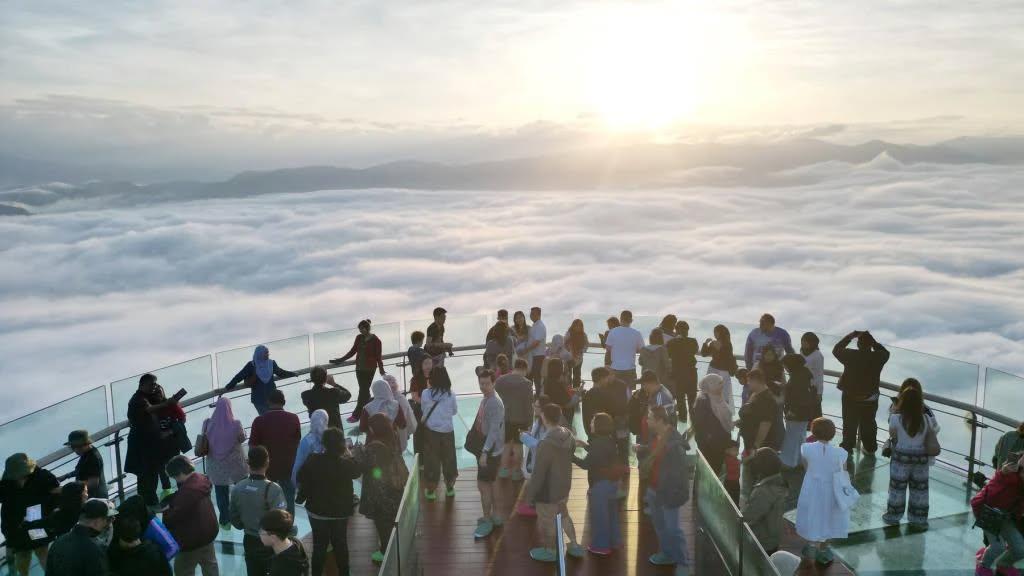 “เบตง” คึกคัก คนแห่เที่ยวชมทะเลหมอกและพระอาทิตย์ขึ้นยามเช้า บน “สกายวอล์กอัยเยอร์เวง” จุดเช็กอินห้ามพลาดสำหรับผู้ที่มาเยือนดินแดนใต้สุดสยาม เมืองงามชายแดน