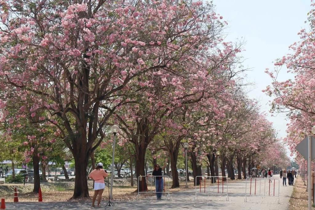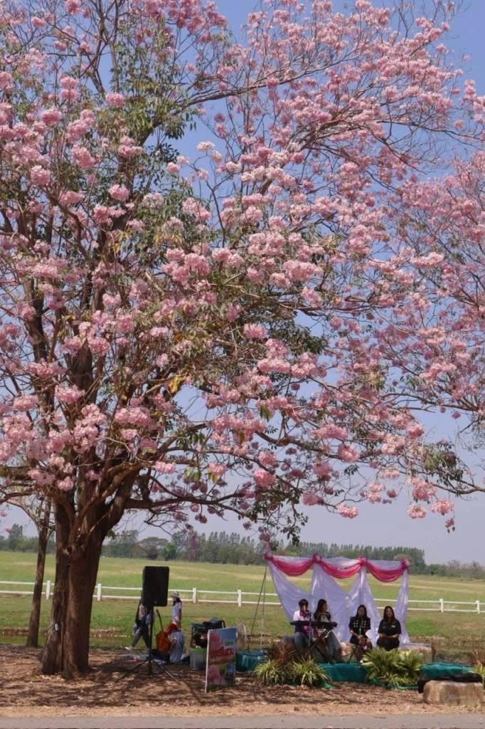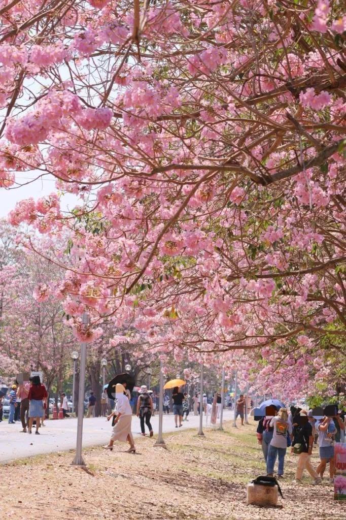 เฟซบุ๊กเพจ มหาวิทยาลัยเกษตรศาสตร์ วิทยาเขตกำแพงแสน ได้อัปเดตการบานของดอกชมพูพันธุ์ทิพย์ บริเวณหน้าโรงเรียนสาธิตฯ เมื่อวันที่ 21 กุมภาพันธ์ 69 ว่า