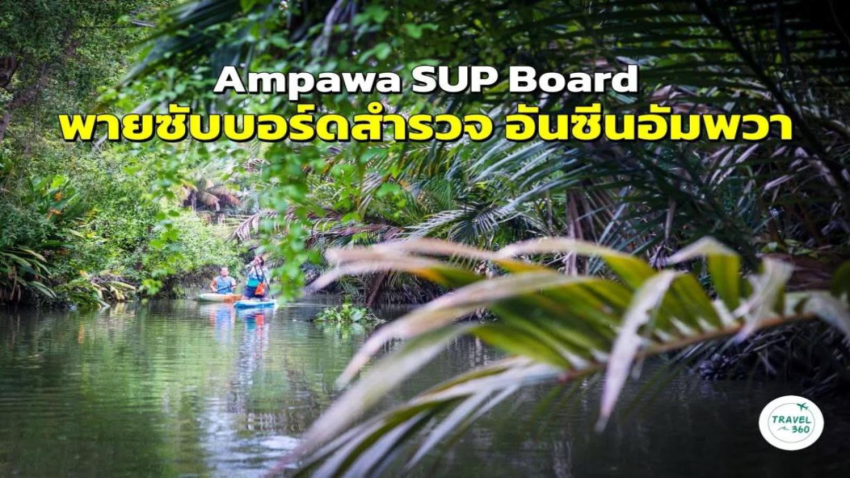 “ซับบอร์ด” เคลื่อนคล้อยลอยบนผิวน้ำอย่างอ้อยอิ่ง ผ่านไปตามร่องน้ำขนาดกว้างไม่กี่เมตรที่โอบขนาบความเขียวขจีของพืชพันธุ์ตามธรรมชาติเบียดเสียดสูงต่ำสลับกลมกลืนกับพืชเกษตรกรรมในสวนริมคลอง ร่มเงาจากพลังสีเขียวสองฟากฝั่งปล่อยความสดชื่นราวร่ายมนต์สะกด มีเสียงทักทายจากชาวบ้านท้องถิ่นถามไถ่เป็นระยะ พร้อมๆกับบางช่วงที่เสียงสุนัขเฝ้าสวนเห่ากันเกรียวเมื่อเห็นแขกแปลกหน้าพายอุปกรณ์สีสันสดใสล่องผ่านคุ้งน้ำบรรยากาศทั้งหมดนี้เป็นความรื่นรมย์ไร้การปรุงแต่งที่นำนักท่องเที่ยวมาสัมผัสประสบการณ์วิถีชีวิตดั้งเดิมชาวอัมพวา ในรูปแบบร่วมสมัย อิ่มอรรถรสทั้งสนุกสนาน ผ่อนคลายใจ และได้สาระความรู้ไปพร้อมกัน แถมยังได้ผลไม้สดๆจากชาวสวนติดไม้ติดมือกลับไปด้วยสำรวจความสมบูรณ์ของระบบนิเวศในอัมพวาแรงบันดาลใจจาก “บางกะจะสู่อัมพวา”“อัมพวา” อำเภอท่องเที่ยวชื่อดังของสมุทรสงคราม นับเป็นหนึ่งในเมืองที่เต็มไปด้วยแม่น้ำลำคลองนับร้อยสาย แต่เมื่อความเจริญเติบโตกับการคมนาคมเปลี่ยนแปลงไปตามยุคสมัย การสัญจรทางน้ำก็ลดบทบาทลงเป็นทางเลือกรอง สำหรับชีวิตประจำวันนั้นคงเหลือเพียงคนในท้องถิ่นบางส่วนที่ยังใช้เรือลัดเลาะล่องไปตามผืนน้ำสำหรับการคมนาคม หรือเพื่อการค้าขายอย่างไรก็ตาม มีชาวอัมพวาที่ต้องการประยุกต์วิถีสัญจรทางน้ำดั้งเดิมให้เข้ากับความร่วมสมัยแห่งยุค จึงเป็นที่มาของกิจกรรมท่องเที่ยวรูปแบบใหม่อย่าง “การพายซับบอร์ดเพื่อเรียนรู้วิถีชีวิตแบบคนท้องถิ่น” โดย “Ampawa SUP Board”ผู้ริเริ่มกิจกรรมท่องเที่ยวเชิงเรียนรู้วิถีชีวิตในอัมพวา อย่าง “นฤพนธ์ อุชุวัฒนะ” เป็นชาวอัมพวาโดยกำเนิด ด้วยความชื่นชอบเดินทางท่องเที่ยว ทำธุรกิจนำเที่ยวไปทั่วประเทศ จนกระทั่งหลายปีก่อนมีโอกาสไปเยือนจังหวัดจันทบุรี และได้ลองไปพายซับบอร์ดกับ “SUPscribe Chanthaburi” ผู้ประกอบการท่องเที่ยวสายกรีนในพื้นที่ตำบลบางกะจะ อำเภอเมืองจันทบุรี ซึ่งเป็นหนึ่งในกิจกรรมท่องเที่ยวแนวอนุรักษ์ที่การท่องเที่ยวแห่งประเทศไทย (ททท.) สำนักงานจันทบุรี แนะนำผู้มาเยือนการพายซับบอร์ดที่ตำบลบางกะจะ เป็นเส้นทางนำไปสัมผัสธรรมชาติป่าโบราณอายุนับร้อยปี พร้อมกับวิถีชีวิตประมงในชุมชน นฤพันธ์ จึงเกิดแรงบันดาลใจว่าการท่องเที่ยวรูปแบบนี้ ก็น่าจะเหมาะเมืองบ้านเกิดที่เต็มไปด้วยแม่น้ำลำคลองกับวิถีชีวิตชุมชนดั้งเดิม“สมุทรสงคราม มีจุดขายเรื่องการทำสวนเกษตร ในสมัยก่อนชาวบ้านก็ใช้เรือเป็นพาหนะสัญจรไปตามร่องน้ำตามสวนต่างๆ ผมจึงอยากลองเอาซับบอร์ดมาใ