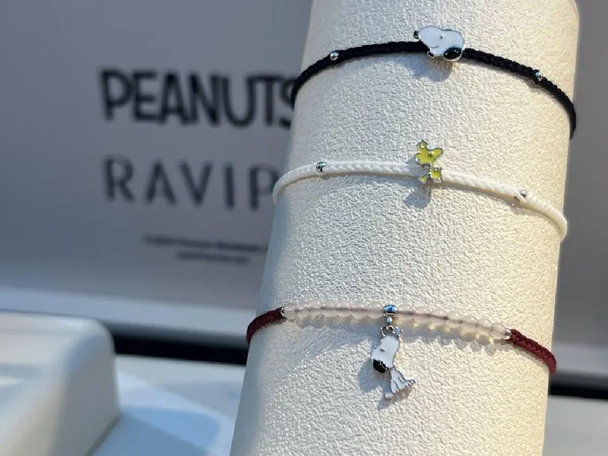 สำหรับชิ้นที่เป็นกำไลข้อมือมีการผสมงานพลอยธรรมชาติแท้ มีการลงสีอีนาเมลด้วยมือบนคาแรคเตอร์สนูปปี้และวูดสต็อคด้วยมือ
