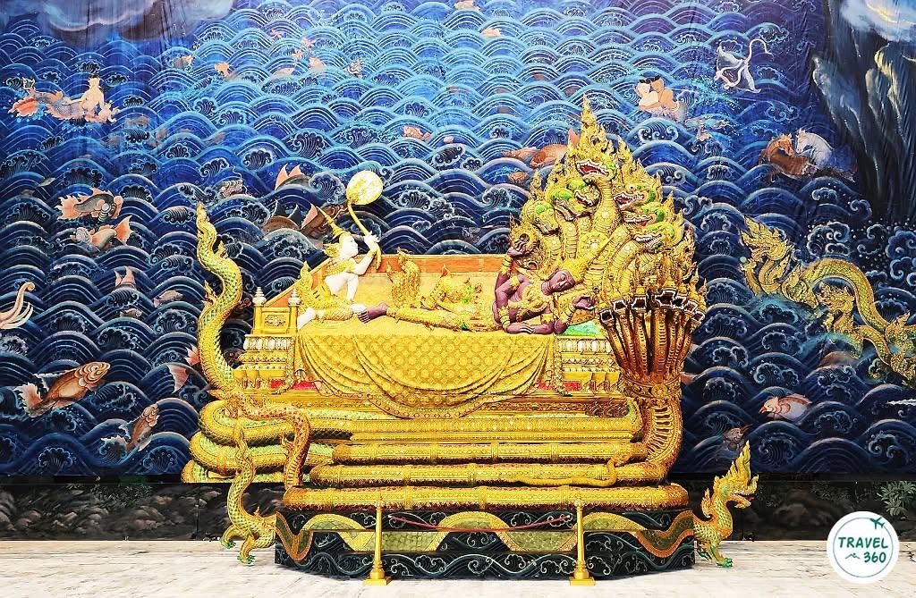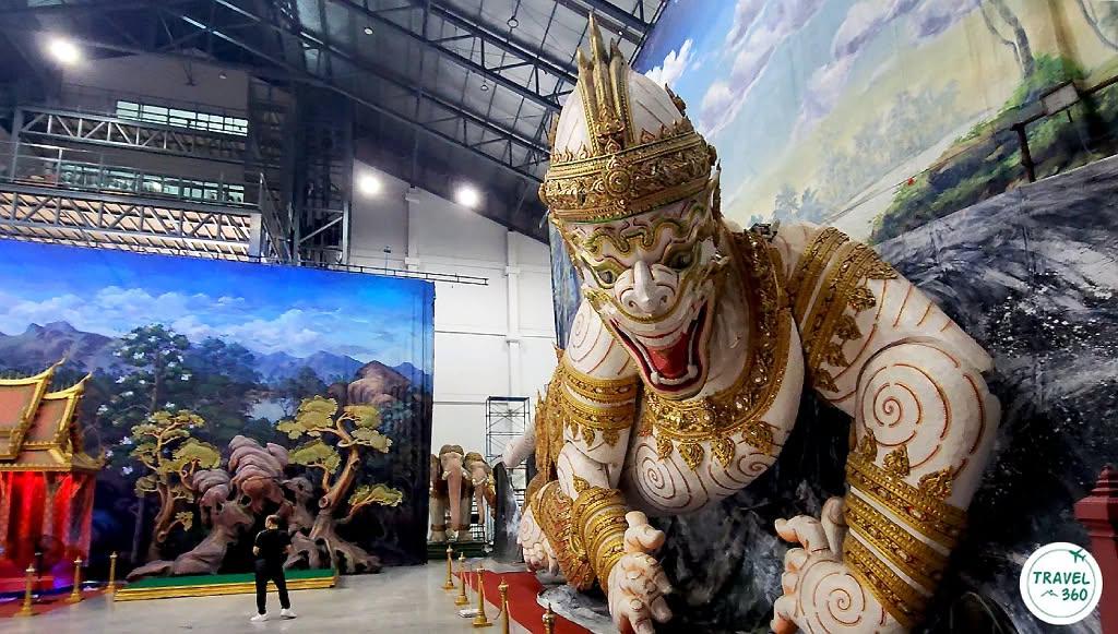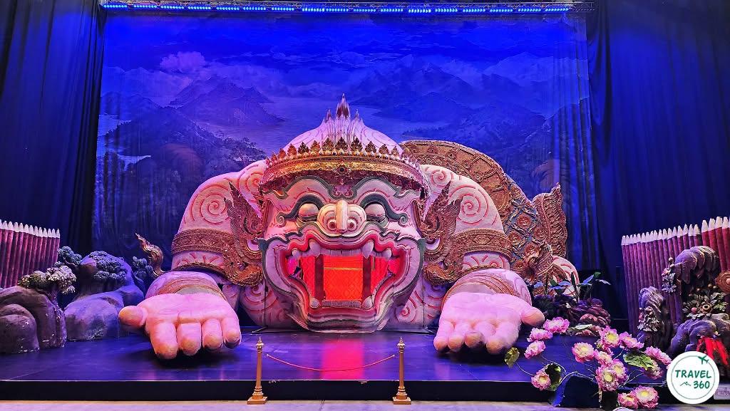 ฉากอันงดงามวิจิตรที่ออกแบบและสร้างสรรค์โดย อาจารย์สุดสาคร ชายเสม ศิลปินแห่งชาติ สาขาทัศนศิลป์ พ.ศ. 2566 (ประณีตศิลป์ – เครื่องประกอบฉาก) กับทีมงาน