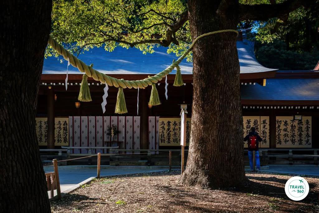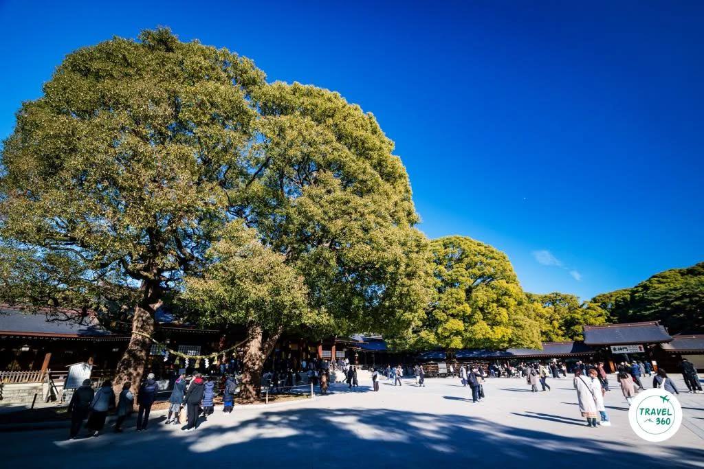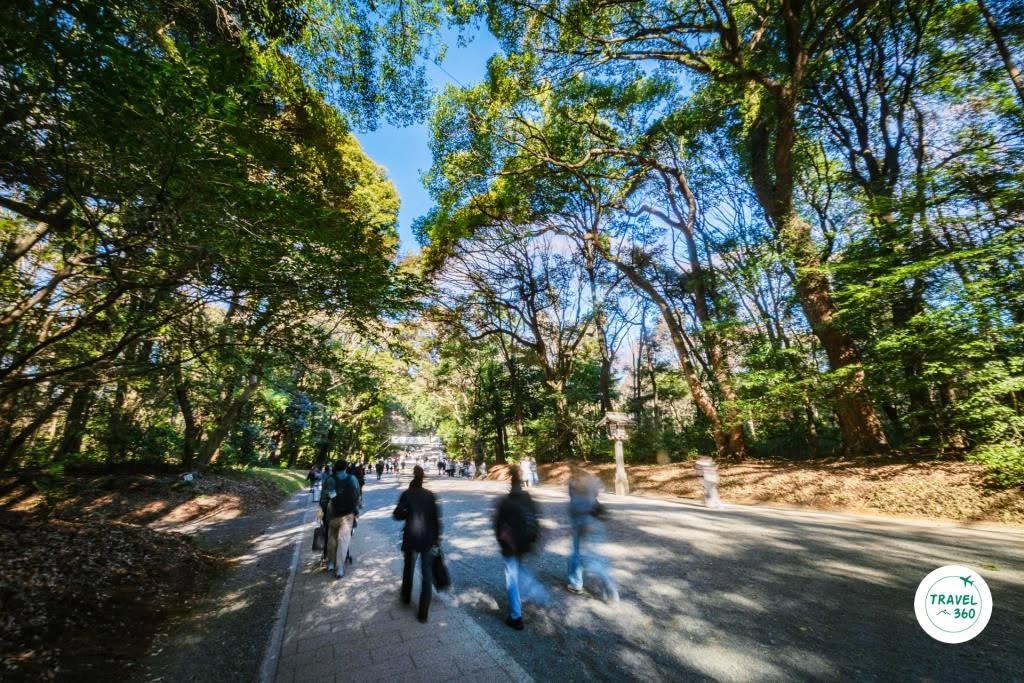 ว่ากันว่ามีชาวญี่ปุ่นจากทั่วประเทศร่วมกันบริจาคต้นไม้นับแสนต้น เพื่อให้นำมาปลูก และขอมีส่วนร่วมในการสร้างศาลเจ้าแห่งนี้ จนปัจจุบันต้นไม้เติบโตงอกงามแทบไม่ต่างจากป่าขนาดใหญ่ใจกลางเมือง ซึ่งการเดินเข้าไปในศาลเจ้าที่ร่มรื่นด้วยป่าโอบล้อมไว้ อาจทำให้แทบลืมไปเลยว่าอยู่ในใจกลางมหานครที่พลุกพล่านที่สุดแห่งหนึ่งของโลก
