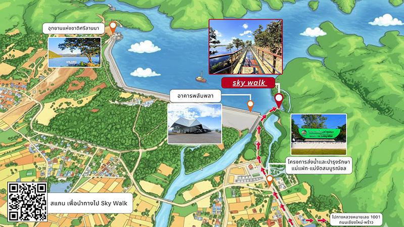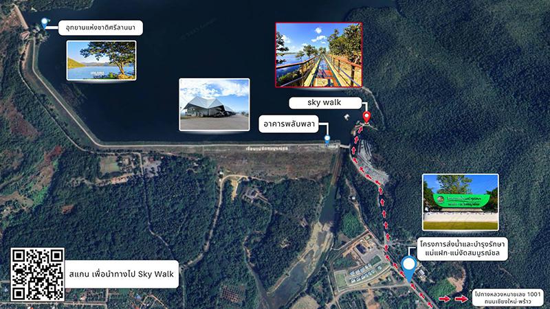 +++ แผนที่แสดงเส้นทางเดินทางไปสกายวอล์กเขื่อนแม่งัดสมบูรณ์ชล สามารถสแกน QR Code ได้เลย