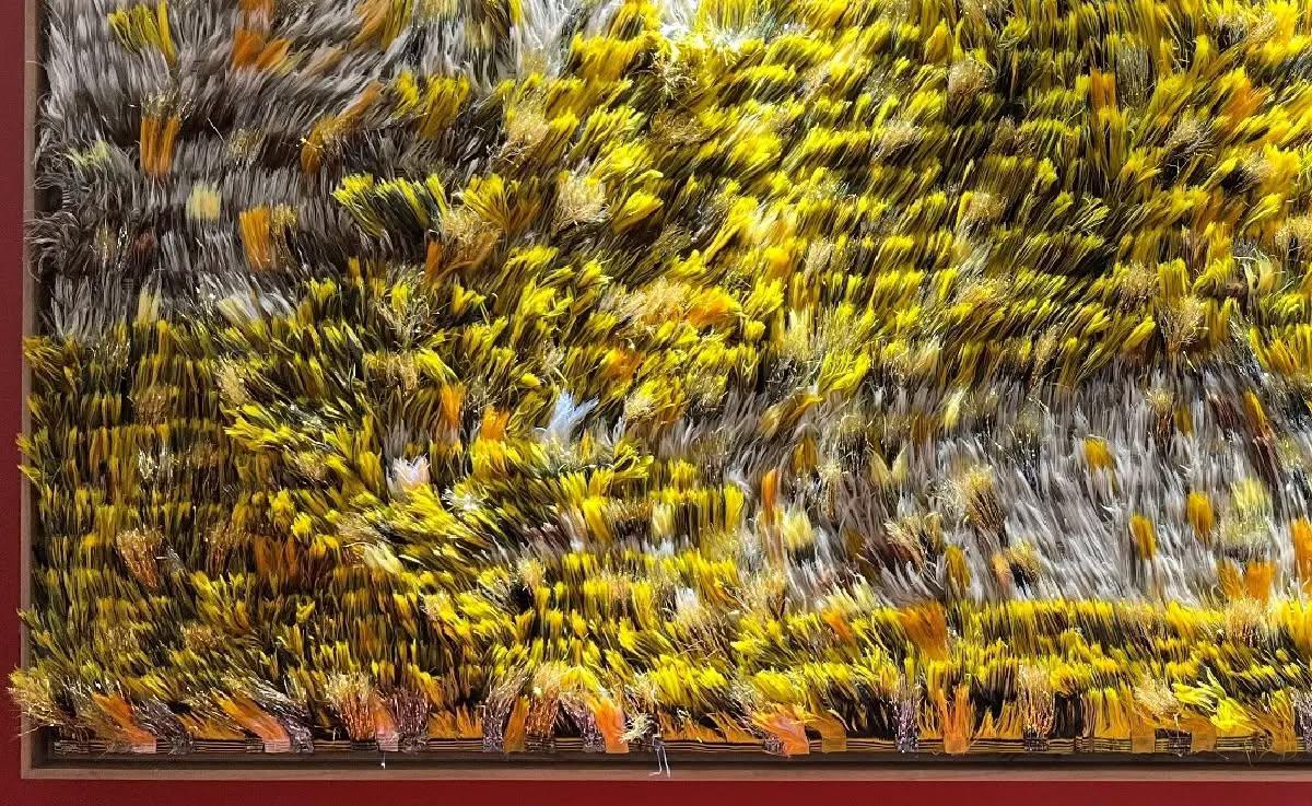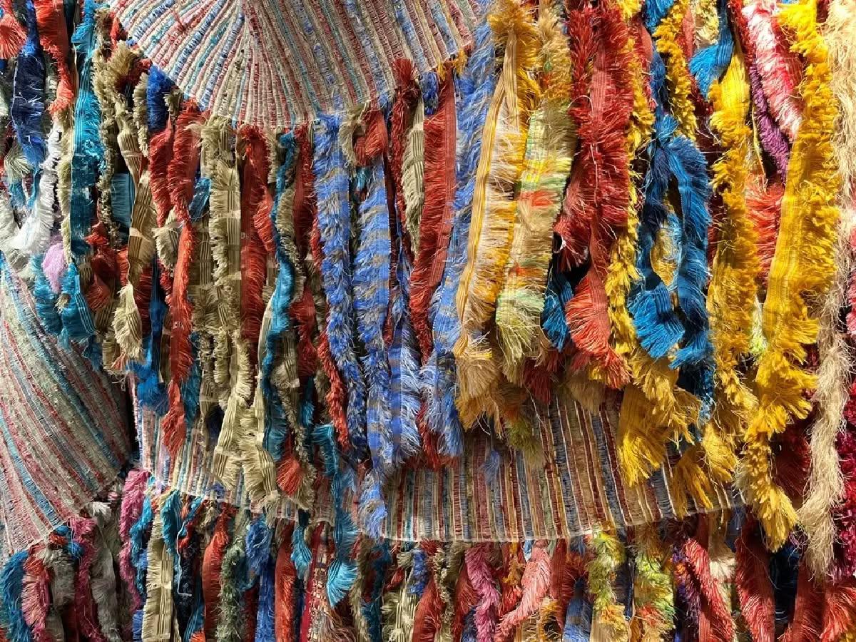 ริมผ้าโทนสีเหลืองและริมผ้าผสมกากเพชร กลายเป็นผลงานศิลปะ