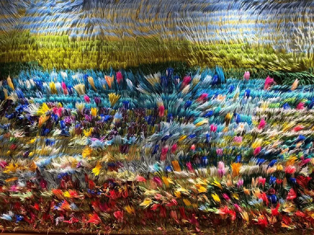 บางที ‘ความบังเอิญ’ ก็นำมาซึ่งผลงานใหม่ เช่น ‘ศิลปะจัดวาง’ ในนิทรรศการนี้ที่เกิดจากการค้นพบเทคนิคใหม่โดยบังเอิญสำหรับเศษผ้าที่มีขนาดเล็กเกินกว่าจะนำมาใช้บนเฟรมผ้าใบ ศิลปินได้นำไปให้ชาวบ้านช่วยทอด้วยเทคนิคดั้งเดิมของชุมชน ทำให้เกิด “เอฟเฟกต์” ที่ไม่ได้ตั้งใจ