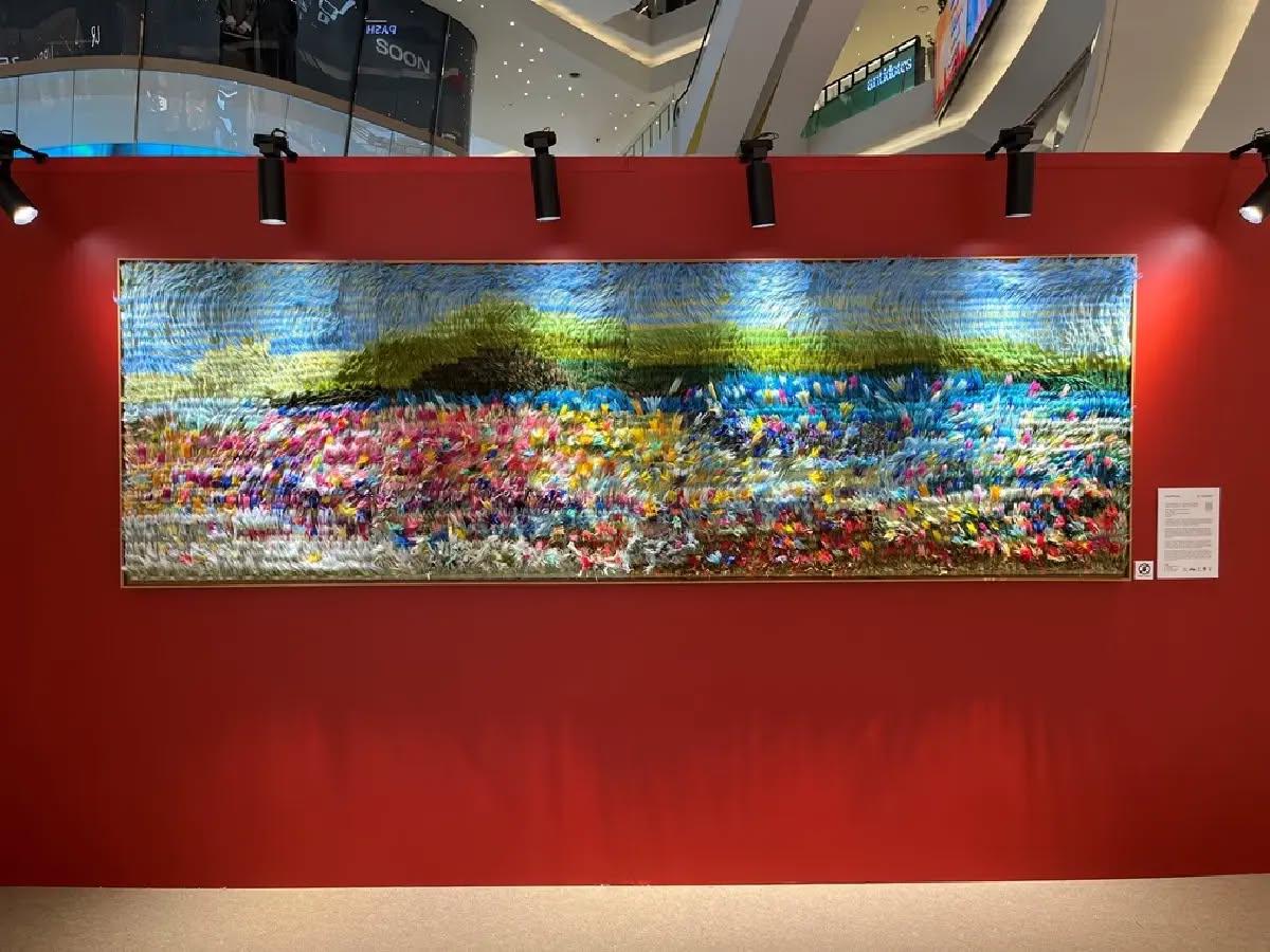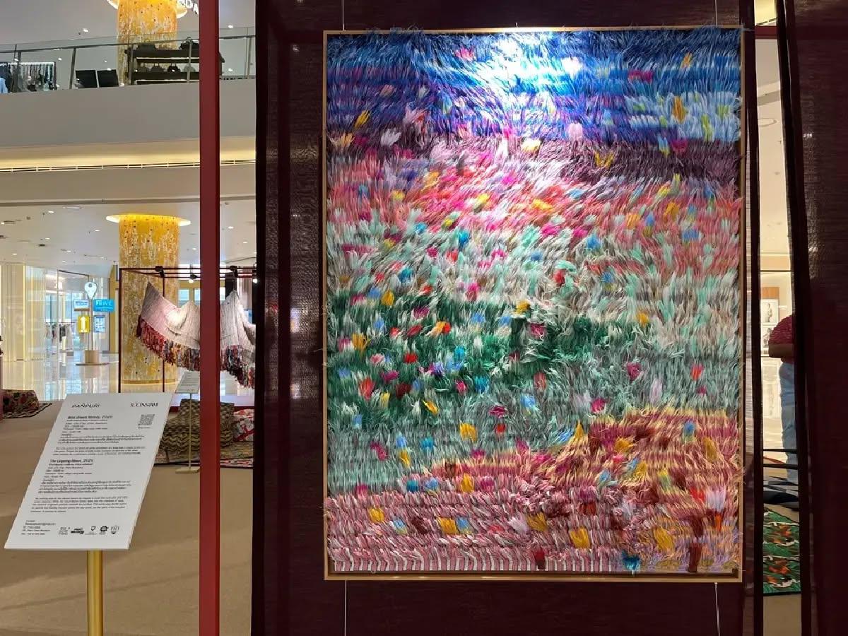 แต่เป็นลายเซ็นของ เปรม บัวชุม อายุ 27 ปี สำเร็จการศึกษาระดับปริญญาตรี สาขาการออกแบบผลิตภัณฑ์ (วิชาเอกสิ่งทอ) คณะสถาปัตยกรรม ศิลปะและการออกแบบ สถาบันเทคโนโลยีพระจอมเกล้าเจ้าคุณทหารลาดกระบัง ศิลปินรุ่นใหม่ที่นำ ริมผ้า (Selvage) ซึ่งเป็นวัสดุเหลือใช้-เหลือทิ้งจากอุตสาหกรรมสิ่งทอที่สุดท้ายกลายเป็น ขยะ มาเชื่อมโยงกับ งานฝีมือ อันประณีต จัดแสดงให้ชมในนิทรรศการชื่อ The Garden in Motion ณ เจริญนคร ฮอลล์ ไอคอนสยาม