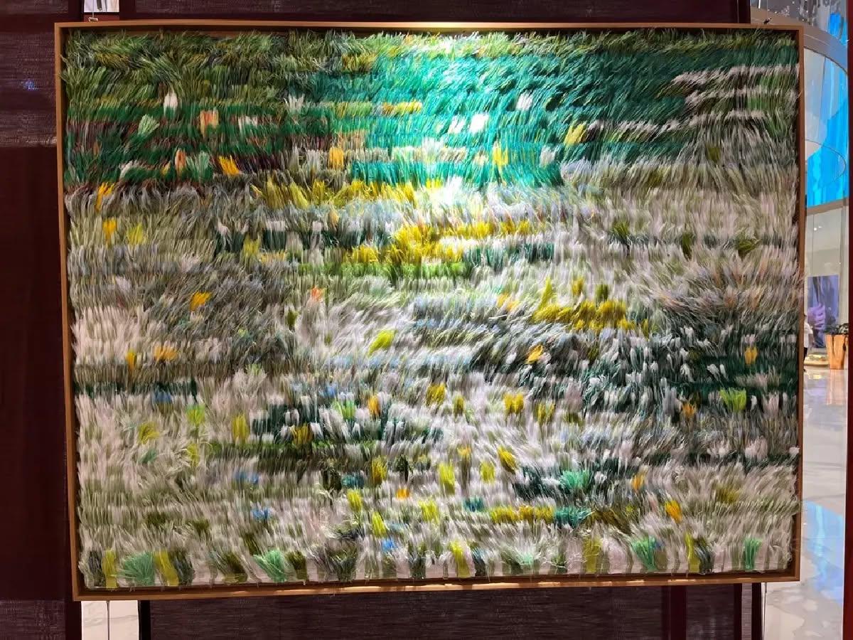 ในนิทรรศการThe Garden in Motion ยังมีผลงานน่าทึ่งอีกหลายชิ้นที่ศิลปินได้แรงบันดาลใจหลักจากธรรมชาติและสิ่งแวดล้อมรอบตัว อาทิ ปฐมบทแห่งความอุดมสมบูรณ์ : ลำนำพฤกษา ขุนเขา และสายน้ำ (The Symphony of Abundance, 2026) ขนาด 105 x 325 เซนติเมตร