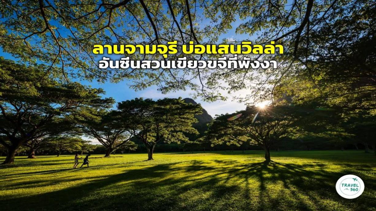 แดดยามบ่ายลอดผ่านกิ่งก้านใบต้นจามจุรีลงไปบนผืนหญ้าที่ราวกับเป็นพรมสีเขียวสด กลายเป็นแสงเงาสวยงามพร้อมกับความสดชื่นจากความเขียวขจีที่ครอบคลุมอาณาเขตประมาณ 5 ไร่ โดยมีภูเขาหินปูนสูงตระหง่านงามเป็นฉากหลังบรรยากาศสวยงามของธรรมชาติ ท่ามกลางพลังงานสีเขียวดังกล่าวนี้ คือ “ลานจามจุรี บ่อแสนวิลล่า” ซึ่งในวันนี้กลายเป็นจุดหมายปลายทางของนักท่องเที่ยว และเป็นแลนด์มาร์กแห่งใหม่ของจังหวัดพังงา ที่เพิ่งเปิดตัวไปเมื่อเดือนสิงหาคม 2568 ที่ผ่านมาแสงอาทิตย์ลับเหลี่ยมเขาในยามเย็นลานจามจุรี อันซีนพังงาลานจามจุรี (ที่เคย) เป็นแหล่งท่องเที่ยวลับๆ แห่งนี้ กลายเป็นแหล่งท่องเที่ยวที่โด่งดังขึ้นเรื่อยๆ ตั้งอยู่ด้านหลัง “บ่อแสนวิลล่า แอนด์ สปา” รีสอร์ตหรูในอำเภอทับปุด จังหวัดพังงา ใช้เส้นทางหลวง 4311 ออกจากตัวเมืองไปทางทิศตะวันออก (เส้นทางไปจังหวัดกระบี่) ระยะทางประมาณ 13 กิโลเมตรด้วยความที่ลานต้นไม้นี้ อยู่ด้านหลังของรีสอร์ต ไม่ติดกับถนนใหญ่ และไม่ใช่พื้นที่ติดกับทะเล ทำให้นักท่องเที่ยวจำนวนมากที่ขับรถผ่านไปมา ไม่เคยรู้มาก่อนว่ามีจุดเช็กอินสวยๆอีกแห่งน่าแวะชมระหว่างเส้นทางโดยพิกัดการเข้าชม หากไม่ใช่ลูกค้าที่รีสอร์ต ต้องขับรถเลยไปอีกประมาณ 400 เมตร มีถนนสายรองเป็นซอยเล็กๆ ลัดเลาะเข้าไปไม่ถึง 3 นาทีก็ถึงจุดหมายปลายทางอันเขียวขจี โดยลานจามจุรีกับรีสอร์ต มีถนนสายเล็กๆกั้นกลางไว้ และมีจุดจอดรถให้ต่างหากสวนสาธารณะเอกชนแห่งใหม่ลานกว้างปกคลุมไปด้วยผืนหญ้าเขียวสด มีจุดขาย คือ “ต้นจามจุรี” หรือบางคนเรียกว่าต้นก้ามปู จำนวนหลายสิบต้น กระจัดกระจายไปเต็มพื้นที่ กิ่งก้านที่แผ่ออกในวงกว้างตามลักษณะเด่นของพืชพันธุ์ชนิดนี้ ช่วยมอบร่มเงาความร่มรื่นไปทั่วบริเวณ และเมื่อแสงแดดลอดผ่านกิ่งก้านใบก็ยิ่งเพิ่มความงามต้นจามจุรีอายุราว 17 ปีแม้ต้นจามจุรีเหล่านี้ มีขนาดไม่โตมาก เพราะเพิ่งมีอายุราว 17 ปี ความสูงประมาณ 10 เมตร และยังไม่เป็นต้นจามจุรีขนาดใหญ่แบบที่คุ้นตาตามสถานที่ราชการหรือสถานที่ท่องเที่ยวแห่งอื่นๆ แต่ด้วยจำนวนหลายสิบต้นที่ปลูกร่วมกันในลานกว้าง และมีฉากหลังเป็นกำแพงภูเขาหินปูนขนาดใหญ่ ก็ทำให้ลานจามจุรีแห่งนี้มีทัศนียภาพที่สวยงามเป็นเอกลักษณ์ ถ่ายภาพออกมาได้ชวนตื่นตาตื่นใจ ไม่ว่าจะแนวแลนด์สเคปธรรมชาติ หรือมาถ่ายภาพแนวแนวพอร์ตเทรตบุคคลก็ตาม โดยนอกเหนือจากต้นไม้ทรงสวยที่แผ่ความร่มรื่นไปทั่วแล้ว มีการจัดพร๊อบเป็นจุดเช็กอินให้ถ่ายภาพกระจายอยู่หลายจุดนักท่องเที่ยวที่พักในบ่อแสน